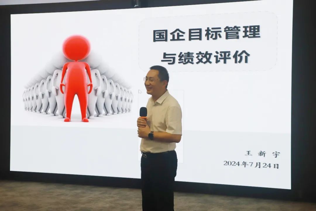 启动仪式结束后,以“国企目标管理与绩效评价”为主题的首期城投大讲堂开讲。本期培训邀请清华、北大、人大、浙大等高校高级培训项目的人力资源资深教授王新宇授课。王新宇从探讨企业年度经营目标的制定思路,介绍常见的企业竞争战略、影响目标实现的因素,解读目标管理与评价的核心等方面,通过案例分享方式分析集团化企业对下属单位进行绩效考核的通病,由浅入深,理论结合实际进行深度解析,让参训人员对任务目标管理和绩效评价有了更深层次的认识。