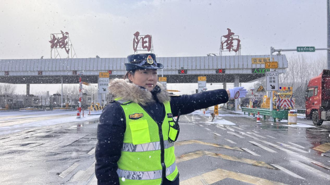 (图为收费站工作人员除雪保畅)