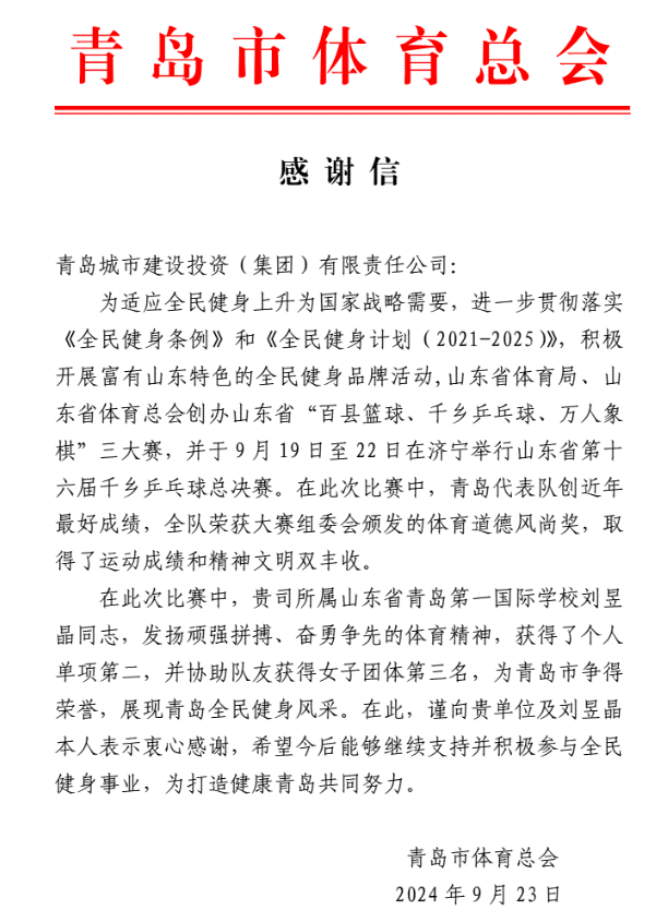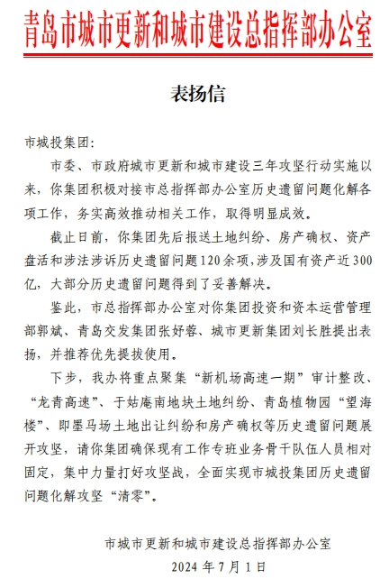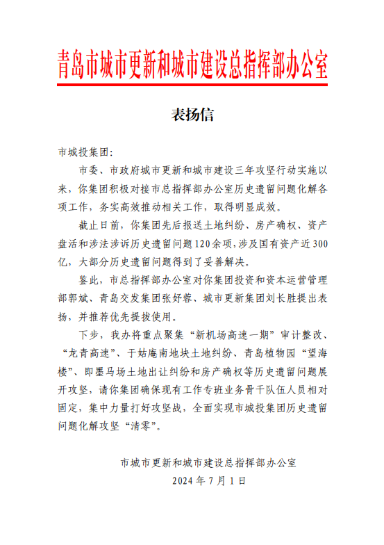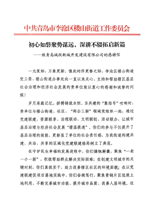 在过去的2024年,华体会(中国)全体干部员工全面贯彻落实党的二十届二中、三中全会精神,认真贯彻落实集团党委决策部署,以勇争上游的雄心壮志,“打头阵、当先锋”的进取意识,出色完成各项工作任务,涌现出了一批表现优异、成绩突出的集体和个人,收获了131项集体荣誉、67项个人荣誉,以及来自多个单位的26封感谢信。社会各界的认可与感谢,就是城投集团继续奋进前行的不竭动力!以下为2024年度部分荣誉和感谢信集锦: