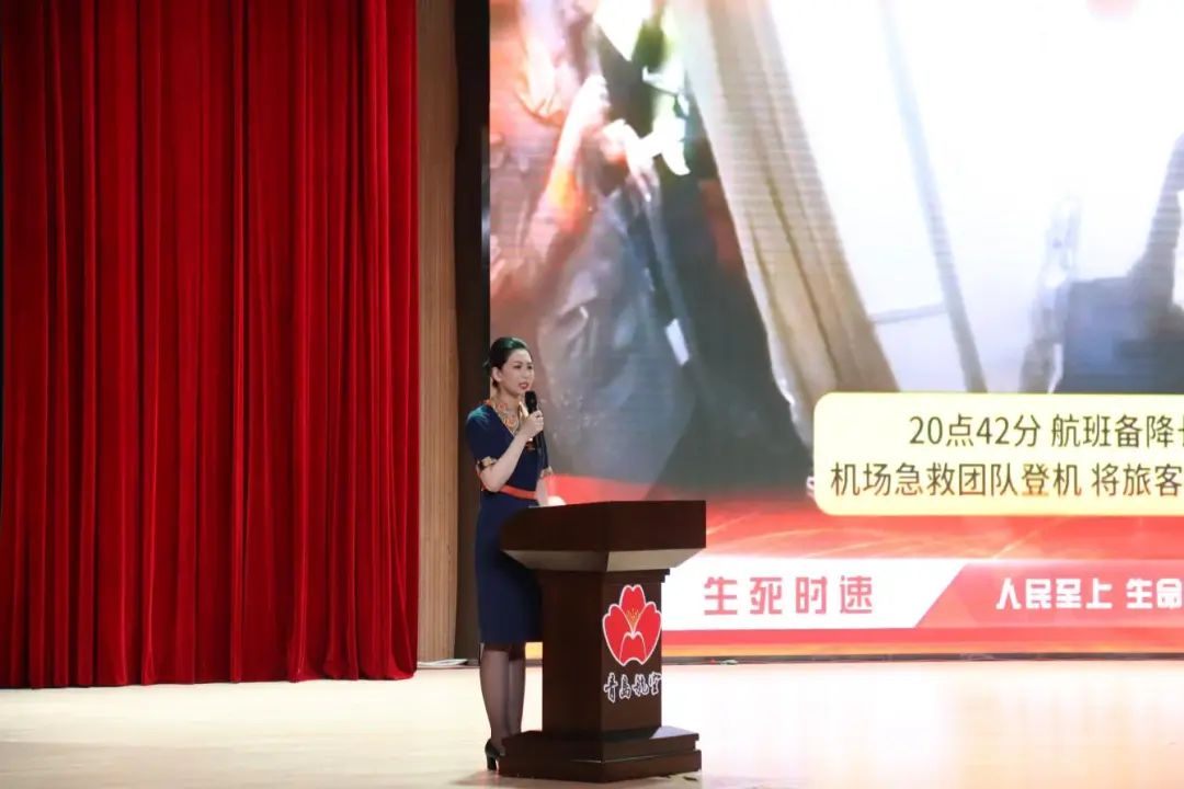 随后,客舱部、机务工程部、信息部、运行指挥中心、地面服务部、飞行部、保卫部(空保管理部)等一线部门进行党建品牌发布讲演,正式发布“耐冬花精品示范组”“铸魂匠心·智维蓝天”“数智青航”“知天·知途·知归处”“锋行地服”“云上党徽·安全经纬”“青锋特勤组”等7个党建品牌,通过主题讲演生动阐释各品牌的象征意义及其承载的核心价值理念。冷严冰、辛晓东为首批党建品牌创建示范党组织授牌,勉励其发挥示范引领作用。