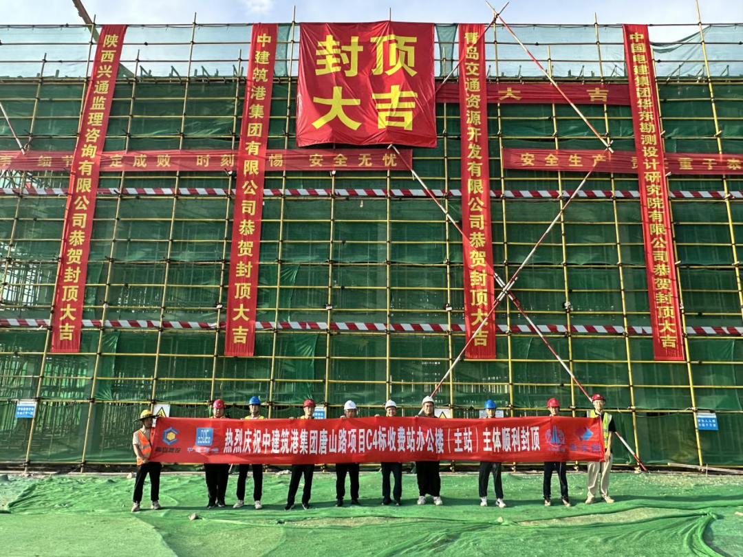 近日,唐山路快速路工程C4标段迎来重要建设节点——收费站办公楼(主站)顺利完成封顶。该工程由华体会(中国)旗下交发集团投资建设、中建筑港集团有限公司承建。此次封顶标志着项目控制性工程取得重大进展,为后续施工奠定了坚实基础。