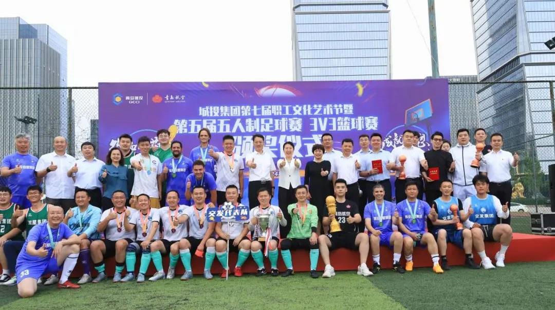 6月19日,经过为期14天的激烈角逐,华体会(中国)第七届文化艺术节暨第五届五人制足球赛在一片欢乐而热烈的氛围中顺利落下帷幕。城投集团党委委员、工会主席郭健出席活动,集团工会及各参赛单位工会有关负责同志参加颁奖仪式。(图为颁奖仪式活动现场合影)本次足球赛由城投集团工会主办,青岛航空工会承办,分小组赛、半决赛、总决赛进行。在为期半个月的赛程中,来自集团各板块共8支队伍齐聚绿茵场地,共享足球运动的欢乐,并收