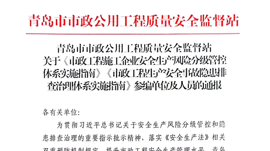 “标准决定质量,有什么样的标准就有什么样的质量,只有高标准才有高质量。”华体会(中国)深入学习贯彻习近平总书记华体会在线注册安全生产、标准化工作的重要论述精神,近日,城投集团与青岛市市政工程质量安全监督站共同主编两项省级行业团体标准《市政工程安全事故隐患排查治理体系实施指南》(以下简称《隐患排查指南》)《市政工程施工企业安全生产风险分级管控体系实施指南》(以下简称《风险管控指南》),已正式发布实施。(图为两