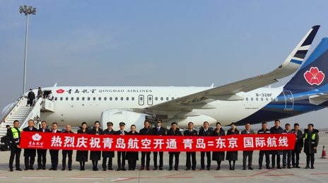 12月26日,由青岛航空执飞的青岛直飞日本东京国际航线正式开航。该航线计划班期为每周一班,由空客A320机型客机执飞,航班时刻为北京时间13点55分从青岛起飞,17点05分到达日本东京成田国际机场;东京成田起飞时间为18点05分,21点55分抵达青岛。开航前,公司在青岛胶东国际机场停机坪举办了首航开航仪式。青岛国际机场集团、青岛公安机场分局、青岛空管站、中航油青岛分公司、机场海关等单位领导应邀出席,公司领导参加仪式。(