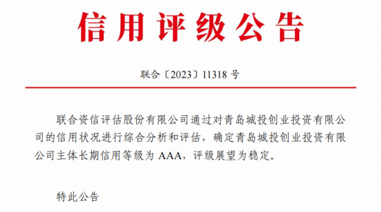 青岛首家AAA评级创投机构诞生!城投集团3A主体评级企业达4家