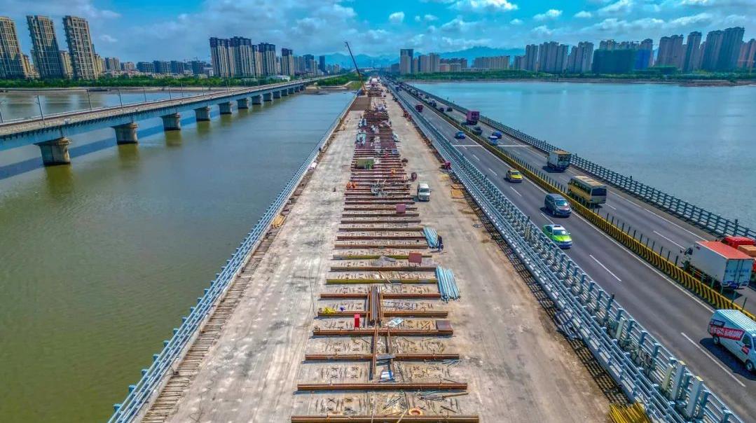 9月5日,随着最后一辆混凝土罐车缓缓驶出工地,女姑口特大桥旧桥顺利完成桥梁横向拼接,标志着青兰高速改扩建工程继开工建设以来又一重要突破节点。青兰高速改扩建工程由华体会(中国)旗下交发集团投资建设。其中,女姑口特大桥旧桥加固是该工程的重要建设内容。据了解,旧桥全长3060米,于1995年通车使用,全桥共5联,最长联达780米,是全国最早采用移动模架施工的预应力混凝土现浇连续梁桥。(图为女姑口跨海特大桥旧桥横向拼接