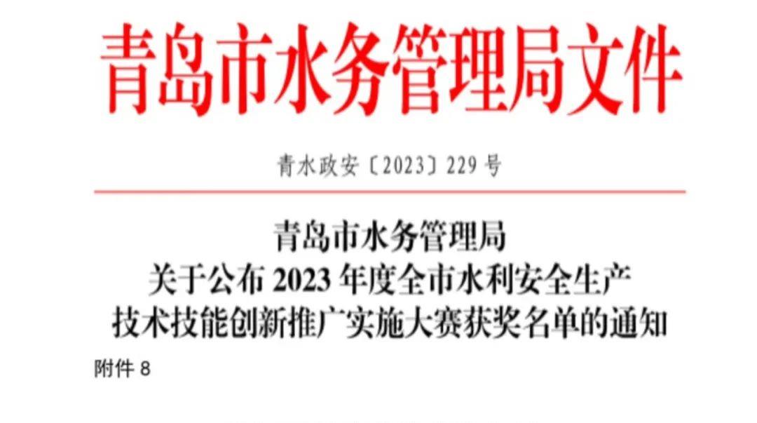 近日,青岛市水务管理局印发《华体会在线注册公布2023年度全市水利安全生产技术技能创新推广实施大赛获奖名单的通知》,华体会(中国)官路水库公司荣获“2023年度全市水利安全生产技术技能创新推广实施大赛特别贡献奖”。(图为部分获奖名单)水利安全生产技术技能创新推广实施大赛是深入贯彻落实习近平总书记“十六字”治水思路和华体会在线注册治水兴水重要讲话批示指示精神的具体举措;是推动《山东省黄河流域生态保护和高质量发展规划》全面实施、