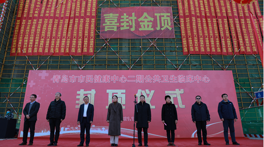 经过近一年的紧张施工,12月28日上午,青岛市市民健康中心二期市公共卫生临床中心项目门诊医技楼、住院楼主体结构顺利封顶。当日,封顶仪式隆重举行,标志着工程建设取得了阶段性胜利。市卫健委党组成员、市计生协会常务副会长杜维平,市卫健委健康产业处处长刘湘琴,市中心医院党委书记宋岩,创发集团党委副书记、副总经理董国富及各参建单位负责人参加了封顶仪式。